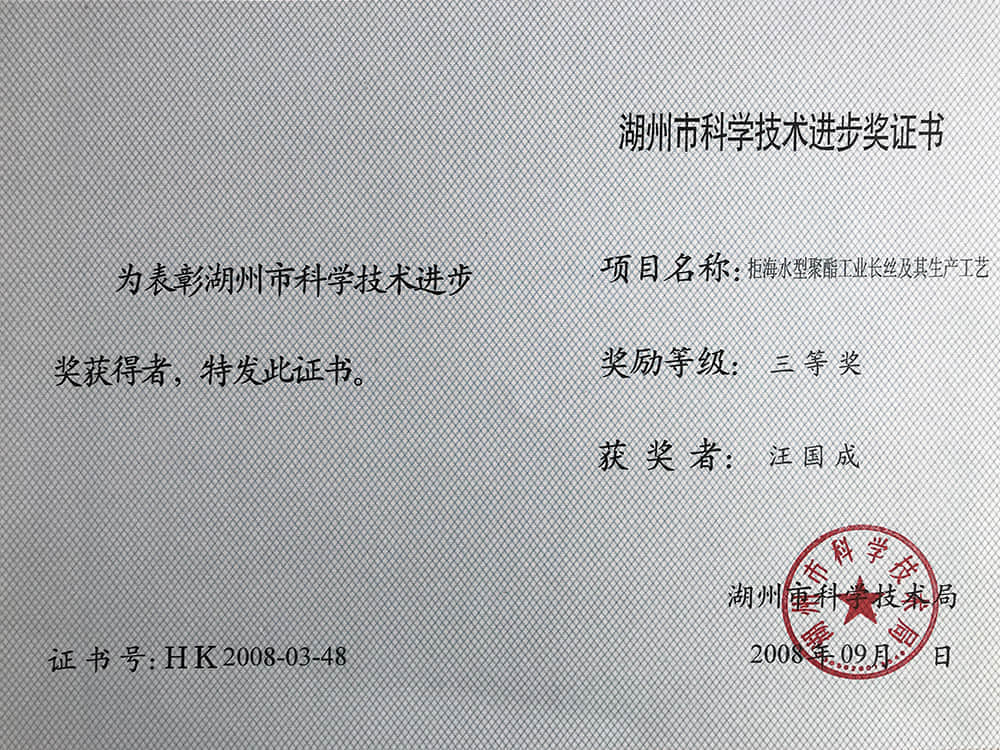 • 2008湖州市科技進步獎三等獎-汪國成