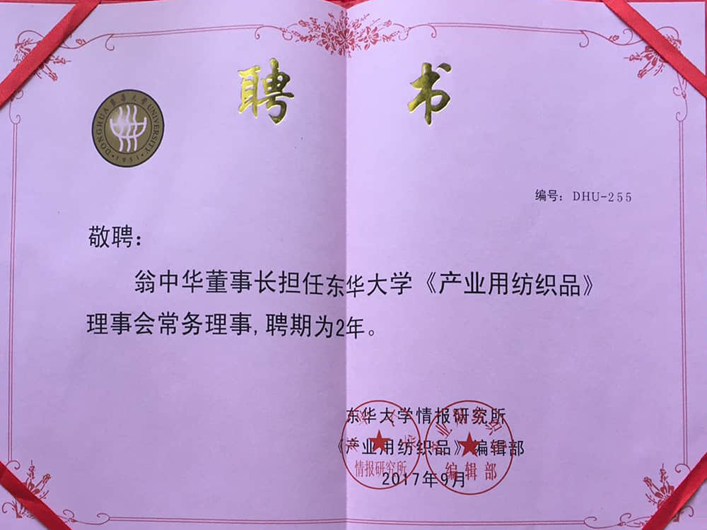 • 2017東華大學產業用紡織品理事會常務理事單位